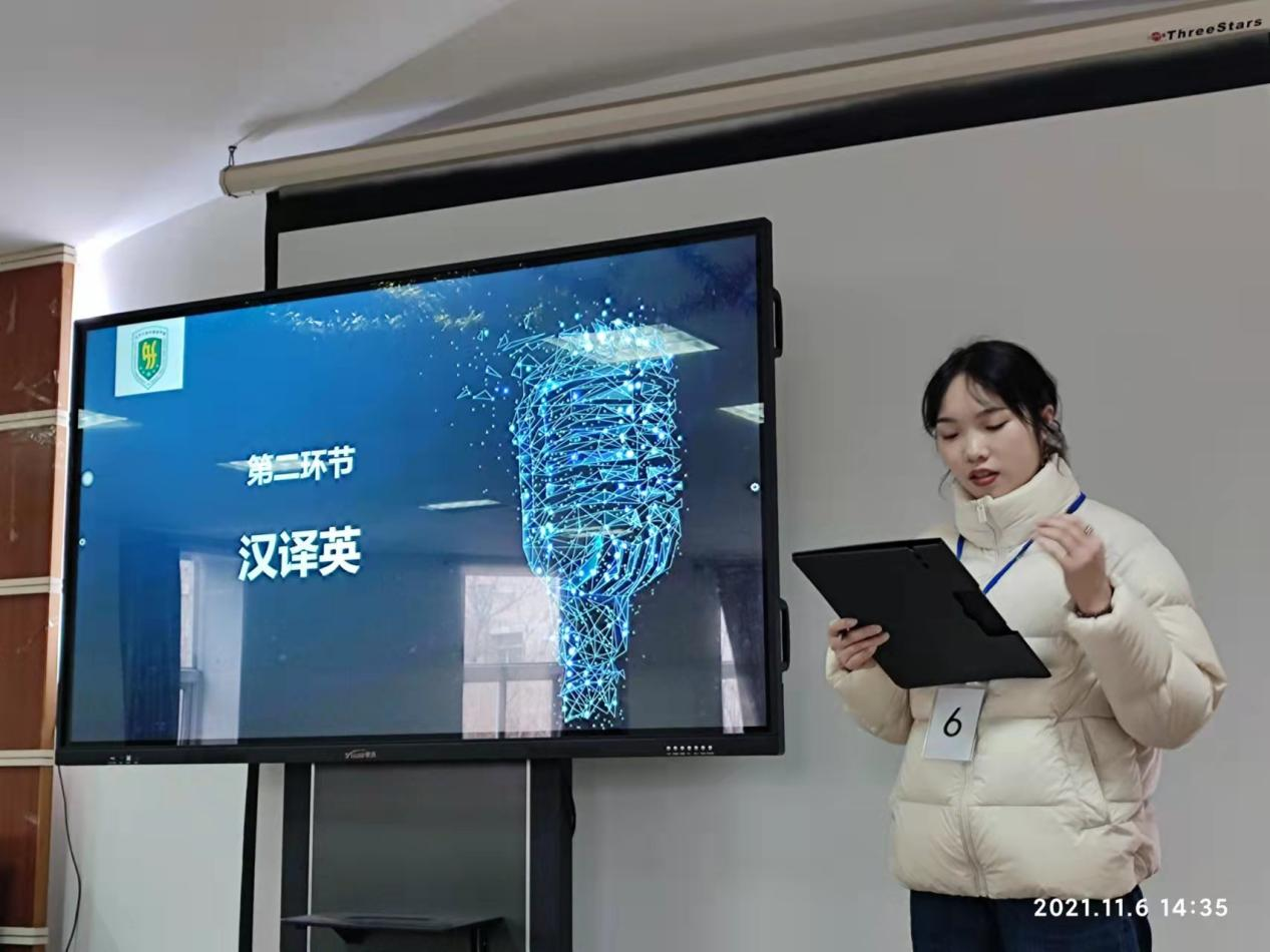 本次比赛的参赛选手共18位。比赛分两轮,第一轮为英译汉,每位选手需在规定时间内将听到的英文音频口译成中文,在激烈的角逐下,11名选手晋级。第二轮为汉译英,选手们现场听一段中文,口译成英文。选手的得分为两轮成绩的总和。最终2021级口译专业研究生史玉峰凭着突出的口译能力,赢得了评委的认可和场下观众的赞许,获得特等奖。2021级口译专业研究生刘彦恺和2019级本科生崔涵斐获得一等奖,另外3名选手获二等奖,5名选手获三等奖。